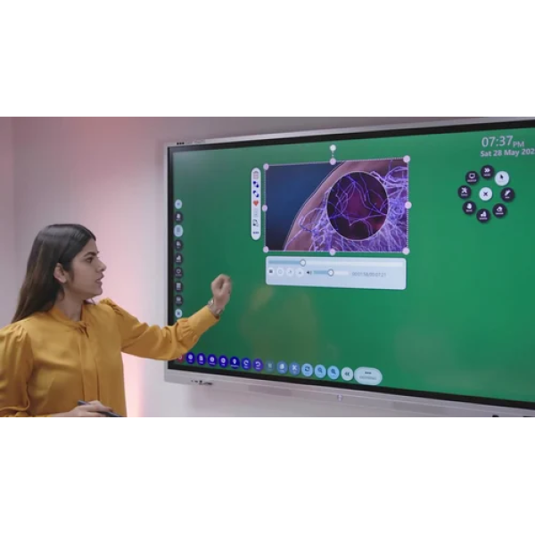 2. **Interactive Whiteboard Capabilities**: IFPs often come with interactive whiteboard software that allows users to draw, write, annotate, and manipulate digital content directly on the screen using a stylus or their fingers. This software may offer a variety of tools, such as pens, shapes, text, and color options.